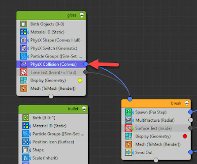 當投射的粒子產生後,我們便可以利用Multifracture 來切割玻璃物體。
